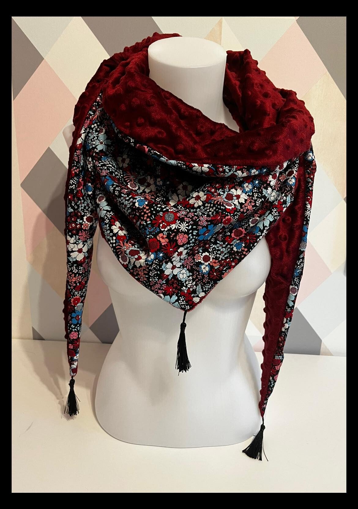 accessoires automne/hiver idéal le chèche à un coté en tissu tout doux uni et un coté avec un tissu à motif