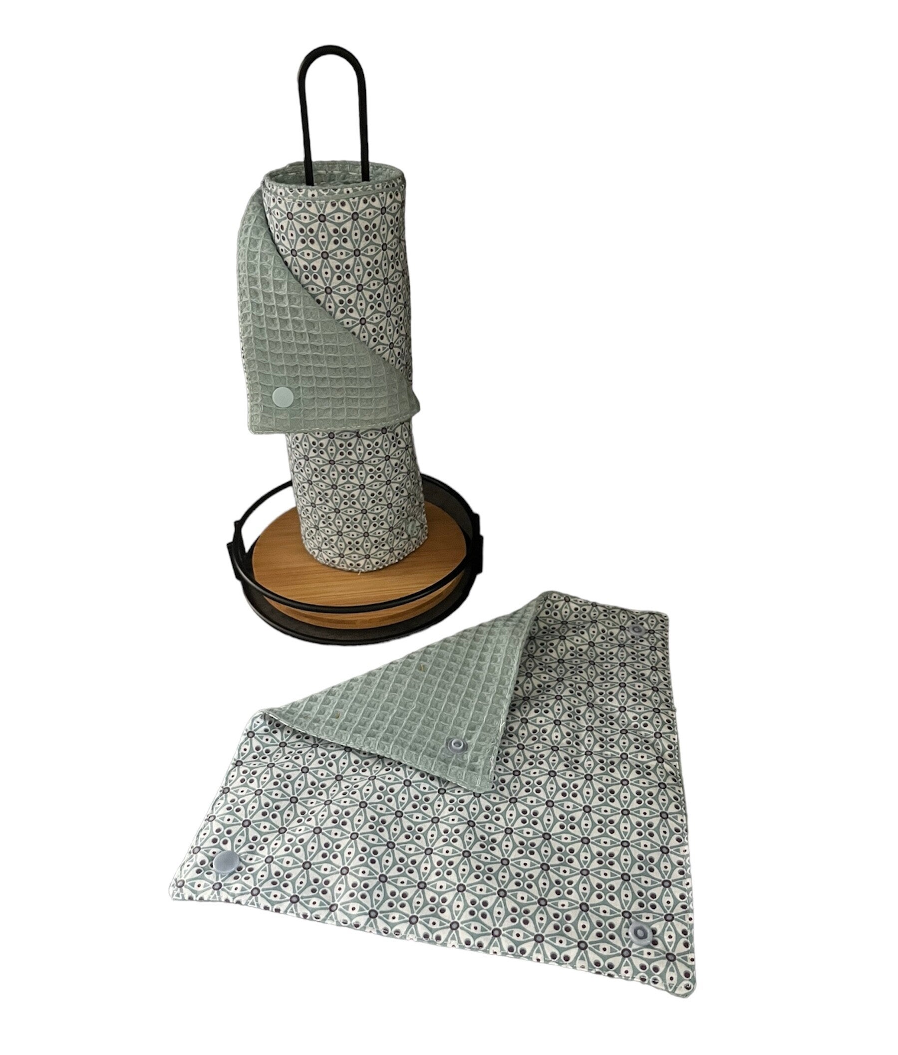 Passez à l'essuie-tout lavable avec 8 feuilles en tissu nid d'abeille. Très absorbants, ils permettent d'essuyer toutes les tâches du quotidien et surfaces dans votre cuisine.